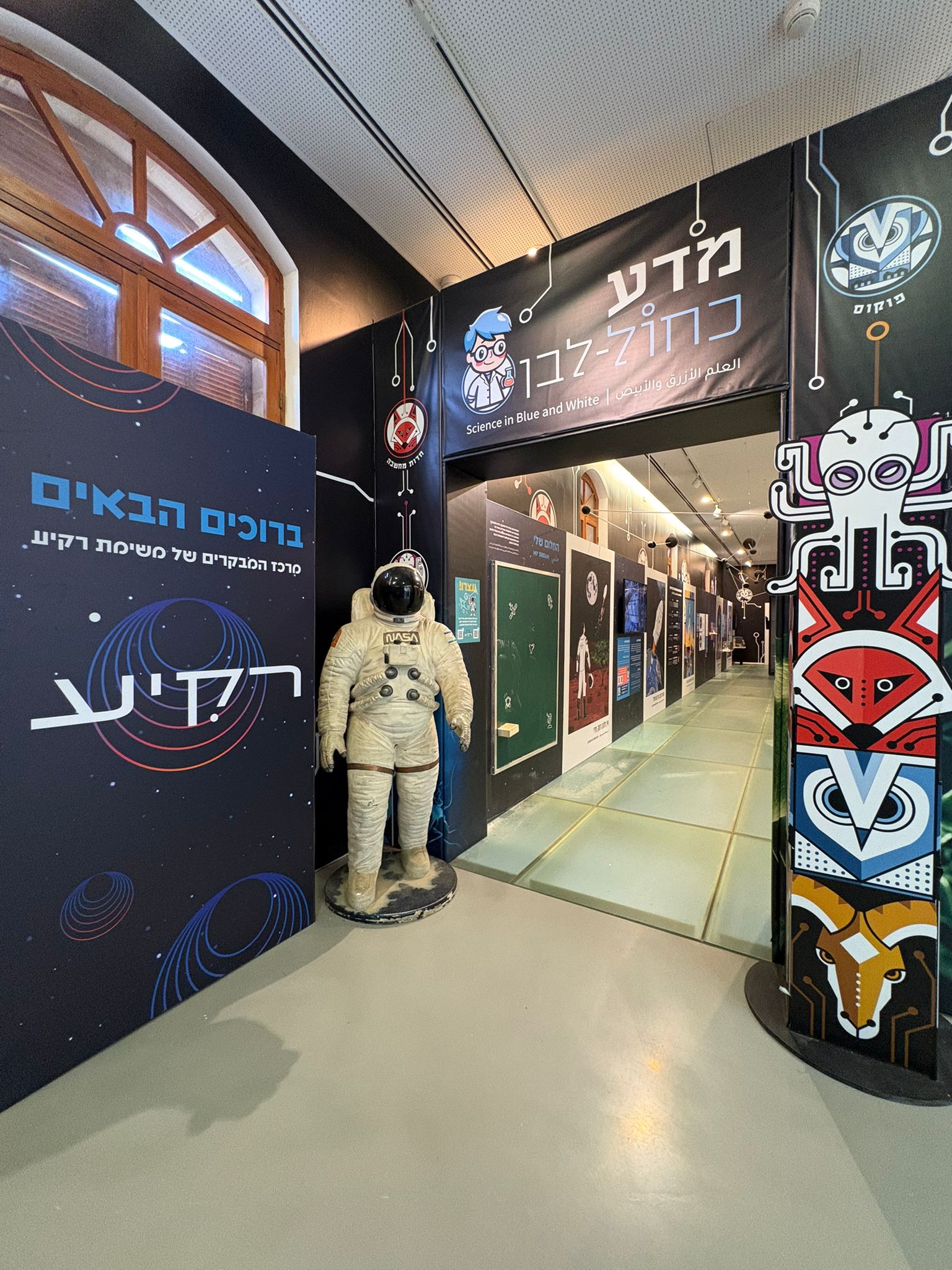 The exhibition offers an interactive experience that brings the world of space closer to visitors of all ages. Illustrated posters by Israeli artists tell the story of the Rakia Mission, from launch to landing, with selected posters brought to life through augmented reality (AR) via the dedicated Rakia app.
